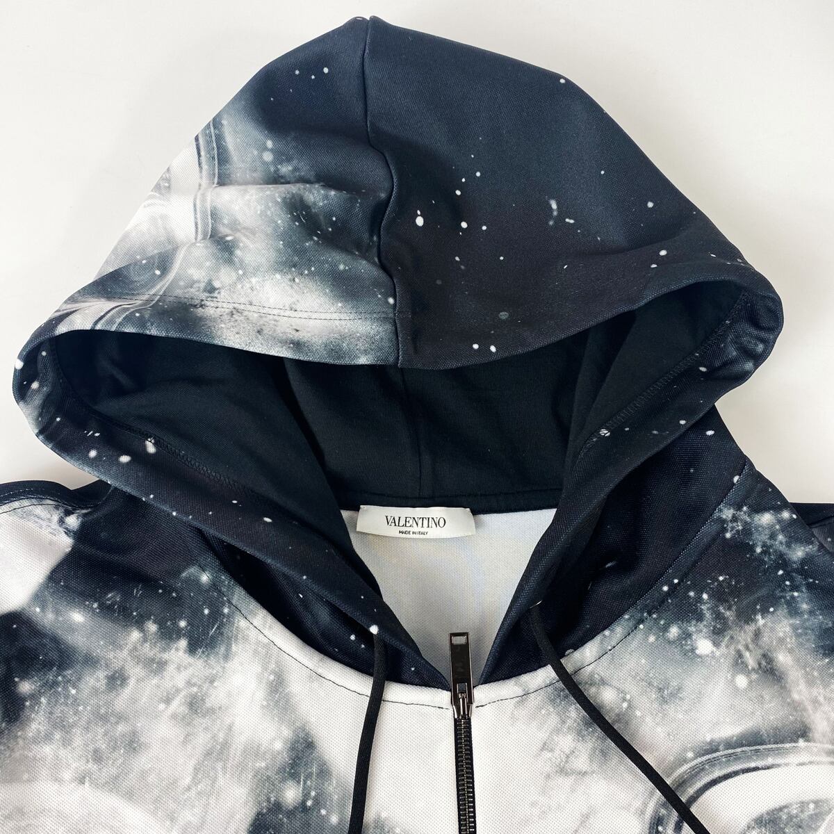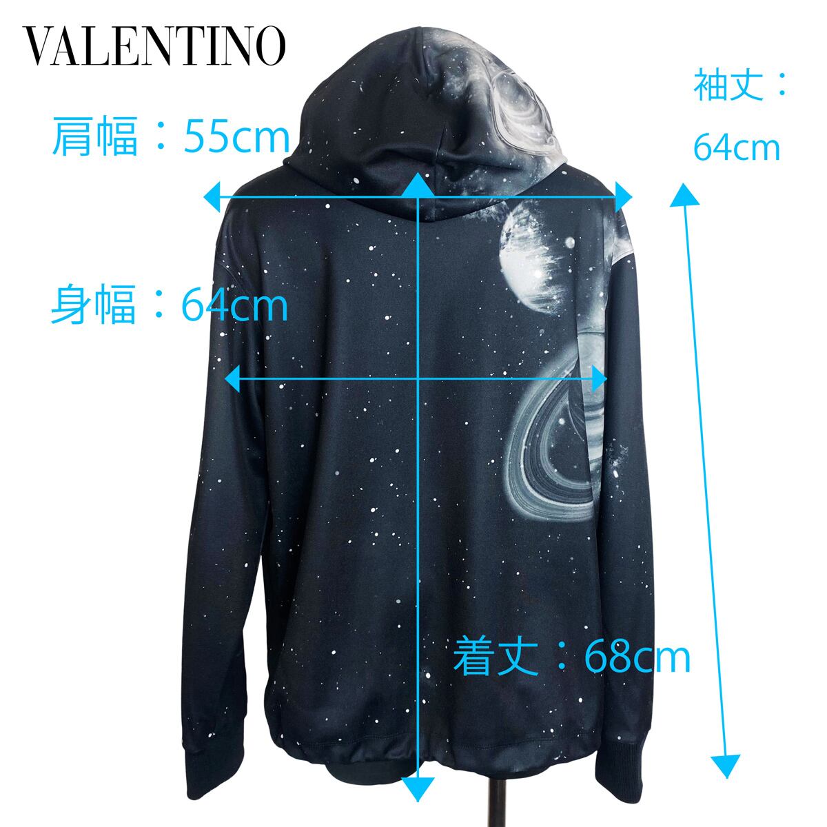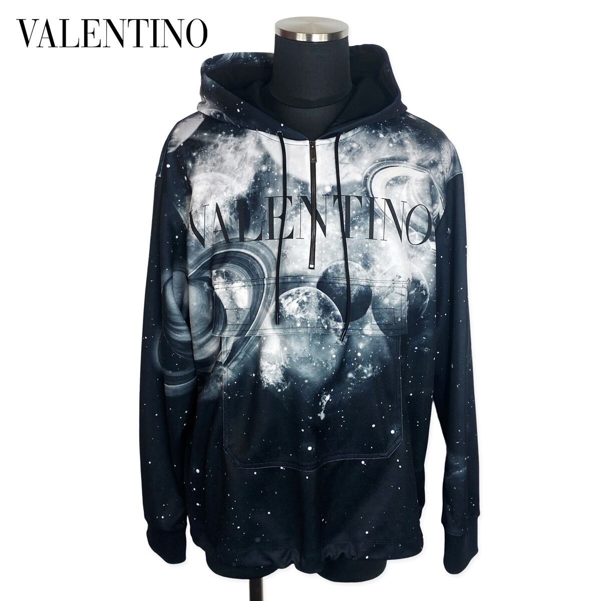 ★美品★ VALENTINO GARAVANI SPACE PRINT HALF-ZIP HOODIE ヴァレンティノ 宇宙柄 ハーフジップパーカー ブラック 黒 L メンズ WV3MF19H7M6 クリーニング済