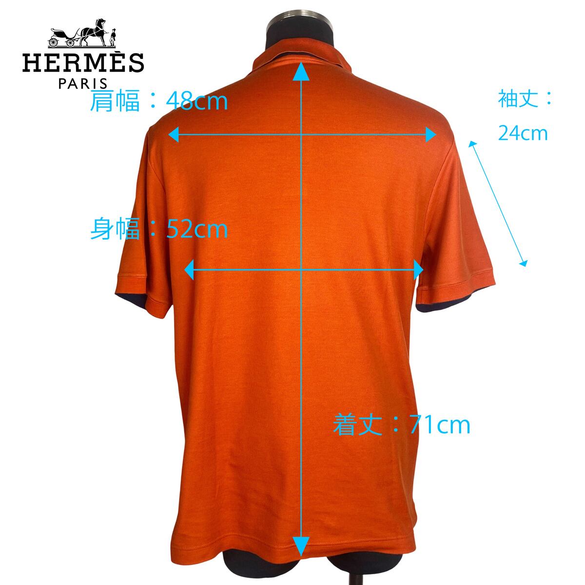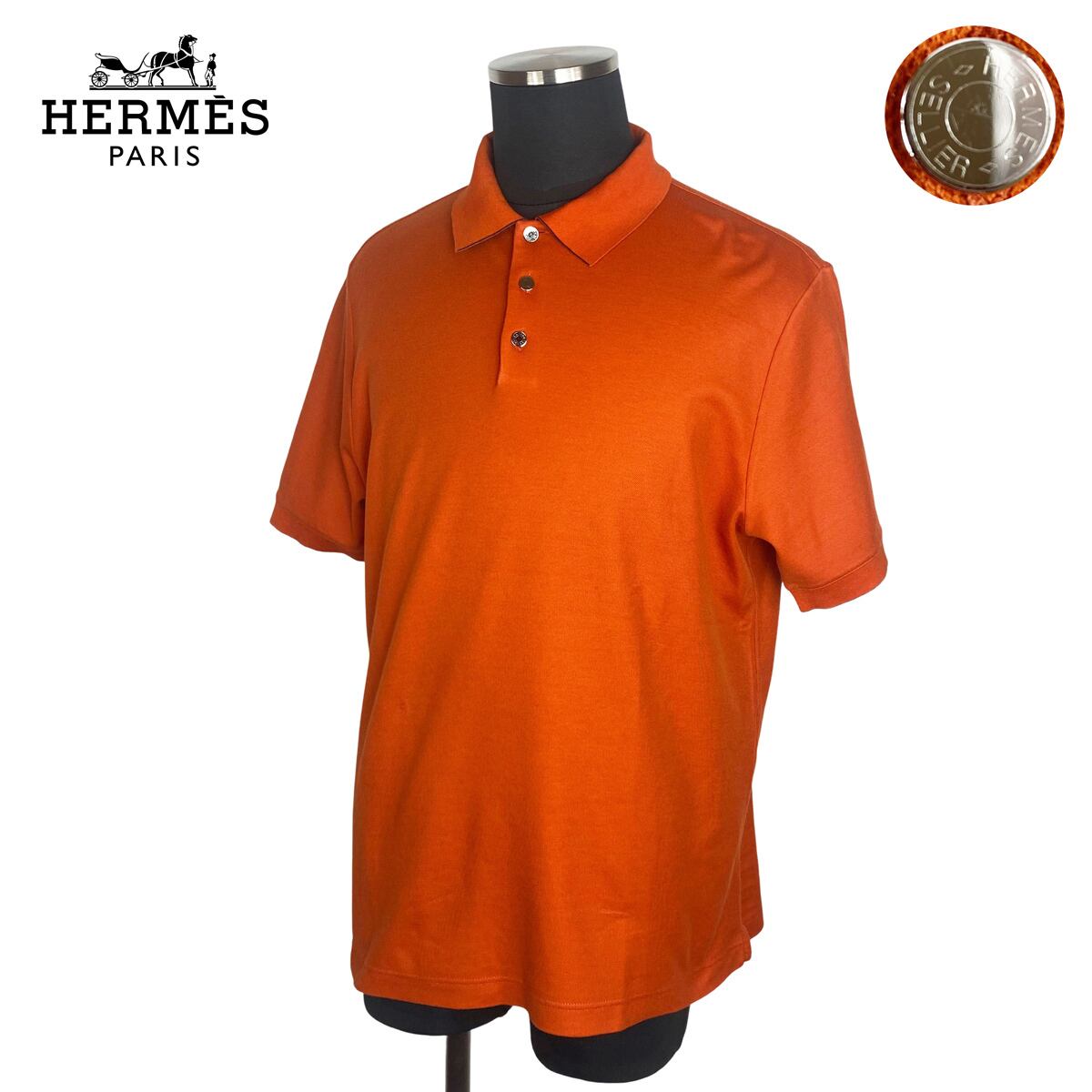 ★大きいサイズ★ HERMES エルメス セリエボタン ポロシャツ 半袖 オレンジ メンズ XXLサイズ イタリア製 予備ボタン付き クリーニング済み