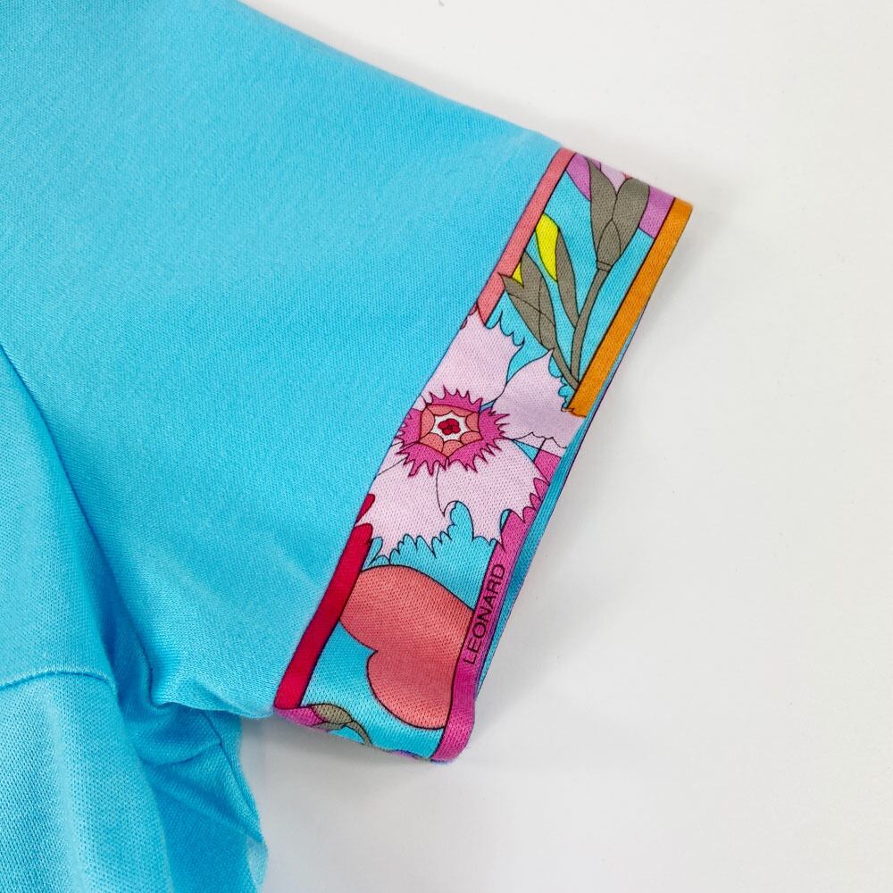 ★美品/激レア★ LEONARD SPORT レオナールスポーツ 花柄刺繍 Tシャツ ショート丈 レディース スカイブルー 青 Mサイズ 半袖 クリーニング済み