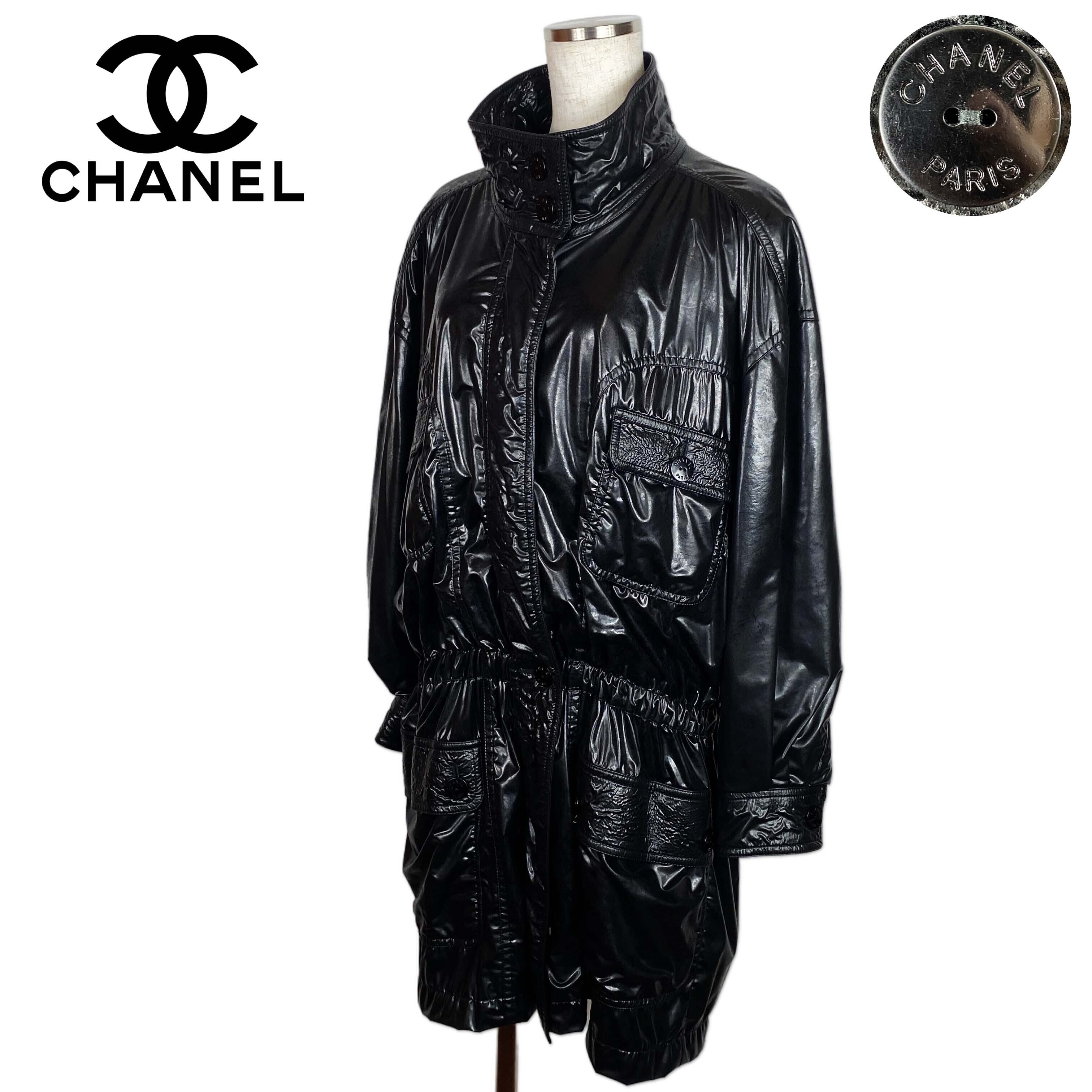 ★激レア/ハンガー・袋付き★ CHANEL シャネル 1997年製 ヴィンテージ ドルマン型 ミドルコート 7分袖 ブラック 黒 38 Mサイズ フランス製